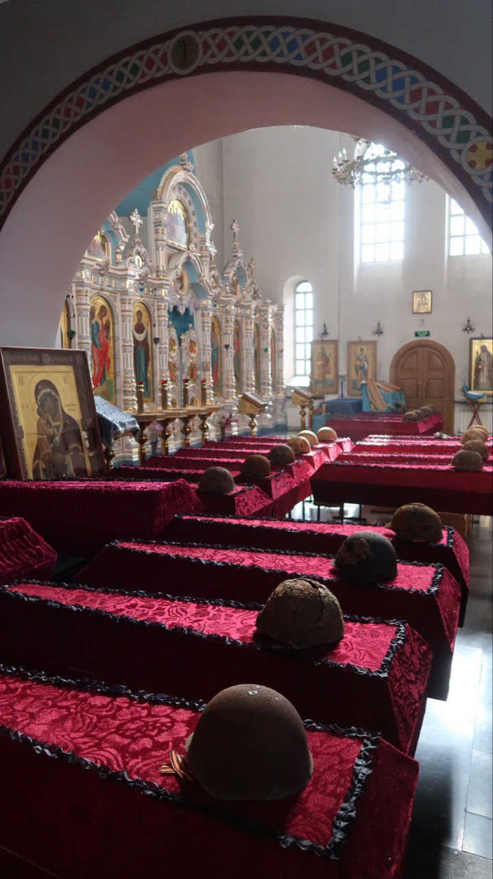 Накануне поисковики центра «Долг» поставили в Покровский храм 27 гробов с останками 247 воинов, найденных на Вяземской земле в ходе Вахты Памяти – 2023.