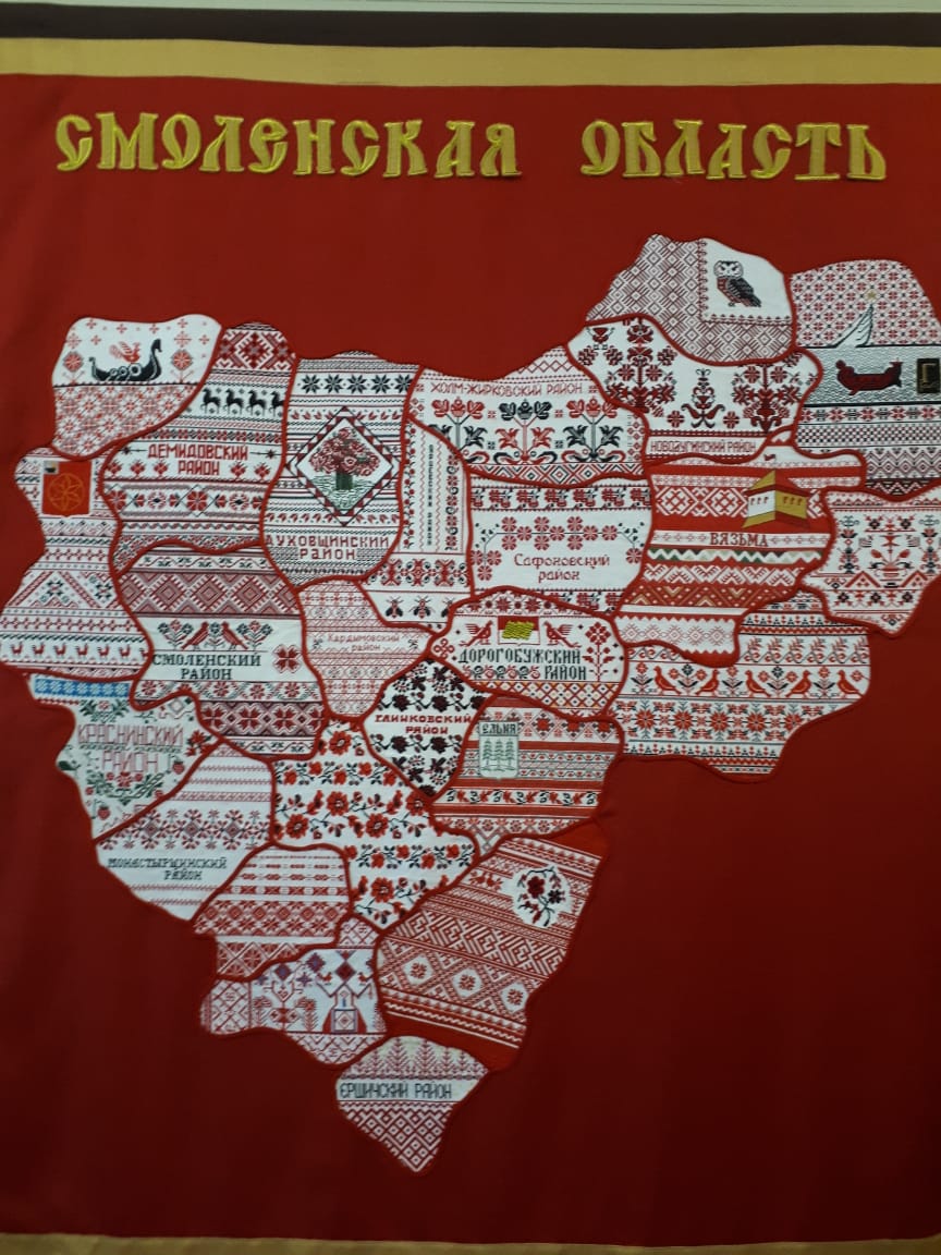 “Всё очень понравилось, особенно карта Смоленской области, выполненная мастерицами в стиле вышивки каждого района! Особенная благодарность нашему экскурсоводу, которая очень гармонично смотрелась среди экспонатов”, – отмечает Валентина.