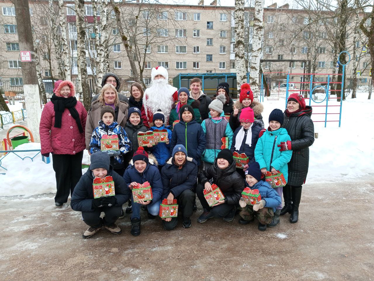 Координатор благодарит семью Антона и Валентины за сладкие подарки, Галину за мандарины, Илью за книги и игры, Тимофея и Дмитрия за весёлый праздник, автодобровольцев Игоря Борисовича и Илью за доставку груза.
