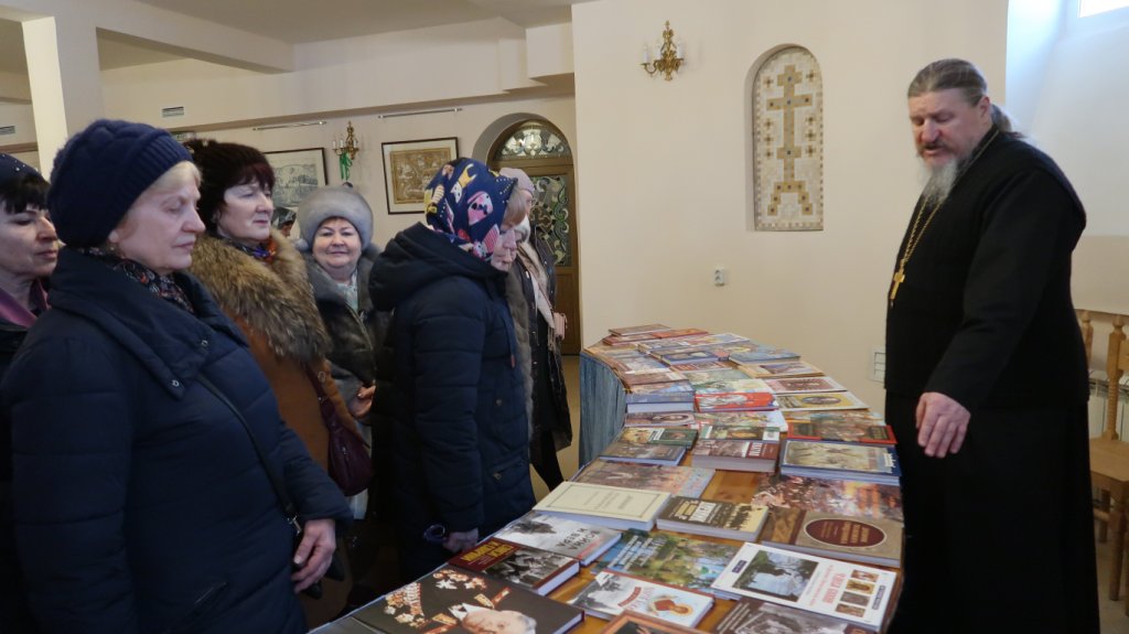 Об истории создания монастыря паломникам рассказала игумения Ангелина (Нестеров). О воинских образах Пресвятой Богородицы: «Одигитрия Вяземская Ратная», «Азовская», «Порт-Артурская», «Августовская» и других иконах, находящихся в Покровском храме, рассказал старший священник монастыря иеромонах Даниил (Сычёв) ».