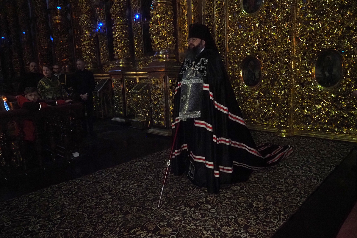 Во время богослужения духовенство переоблачилось в великопостные черные ризы.