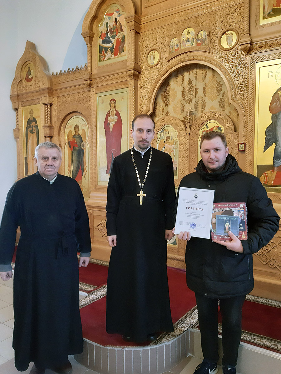 Грамоту и памятный подарок за участие в ежегодном конкурсе вручил настоятель прихода иерей Алексий Колесников.