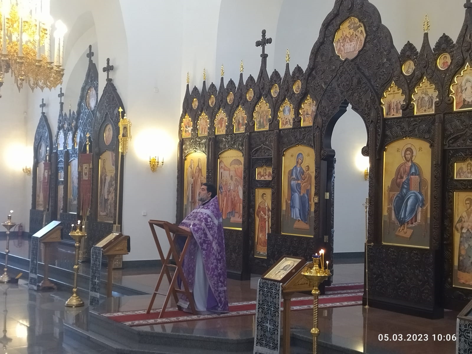 5 марта 2023 года настоятель Благовещенского собора г.Гагарин игумен Александр Карпиков совершил Божественную Литургию в Благовещенском соборе г.Гагарин.