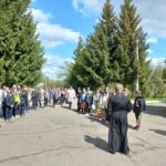 В канун праздника Дня Победы, у захоронений воинов ВОВ, которые находятся на территории храма была отслужена заупокойная лития. Дети возложили цветы.