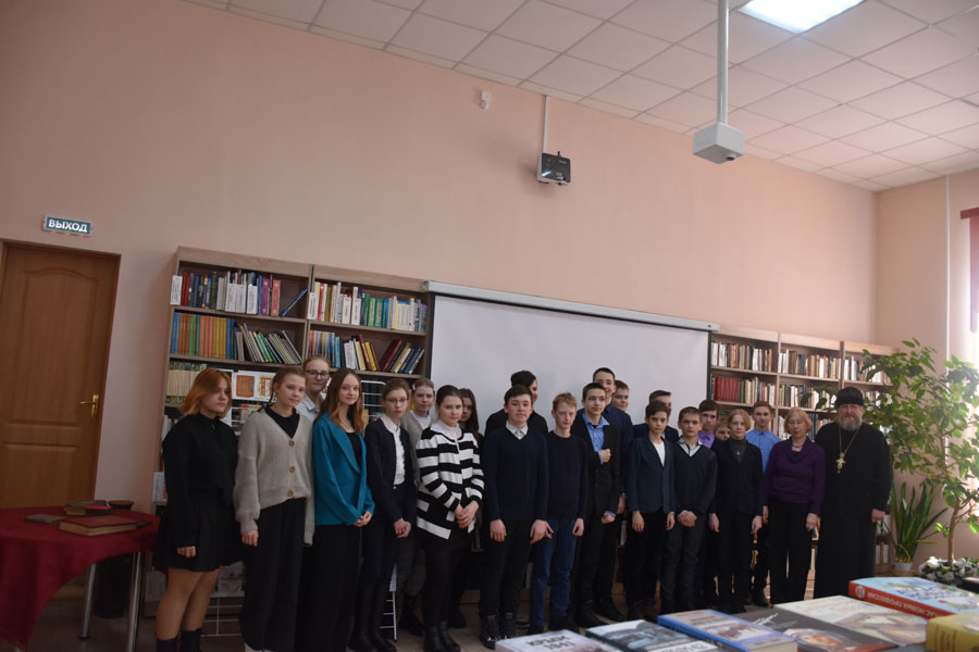 С приветственным словом к детям, обратился настоятель храма в честь Преображения Господня протоиерей Сергий Мосейчук. Он рассказал о значении православной книги в духовно-нравственном воспитании человека, о том, какой след в душе человека может оставить печатное духовное слово, какой неисчерпаемый источник мудрости и благодати представляет собой православная книга. В заключение своей речи батюшка призвал всех присутствующих посещать библиотеку и больше читать, так как книга — это душа, которая обогреет и поможет. А также предоставил ребятам посмотреть старинные книги.
