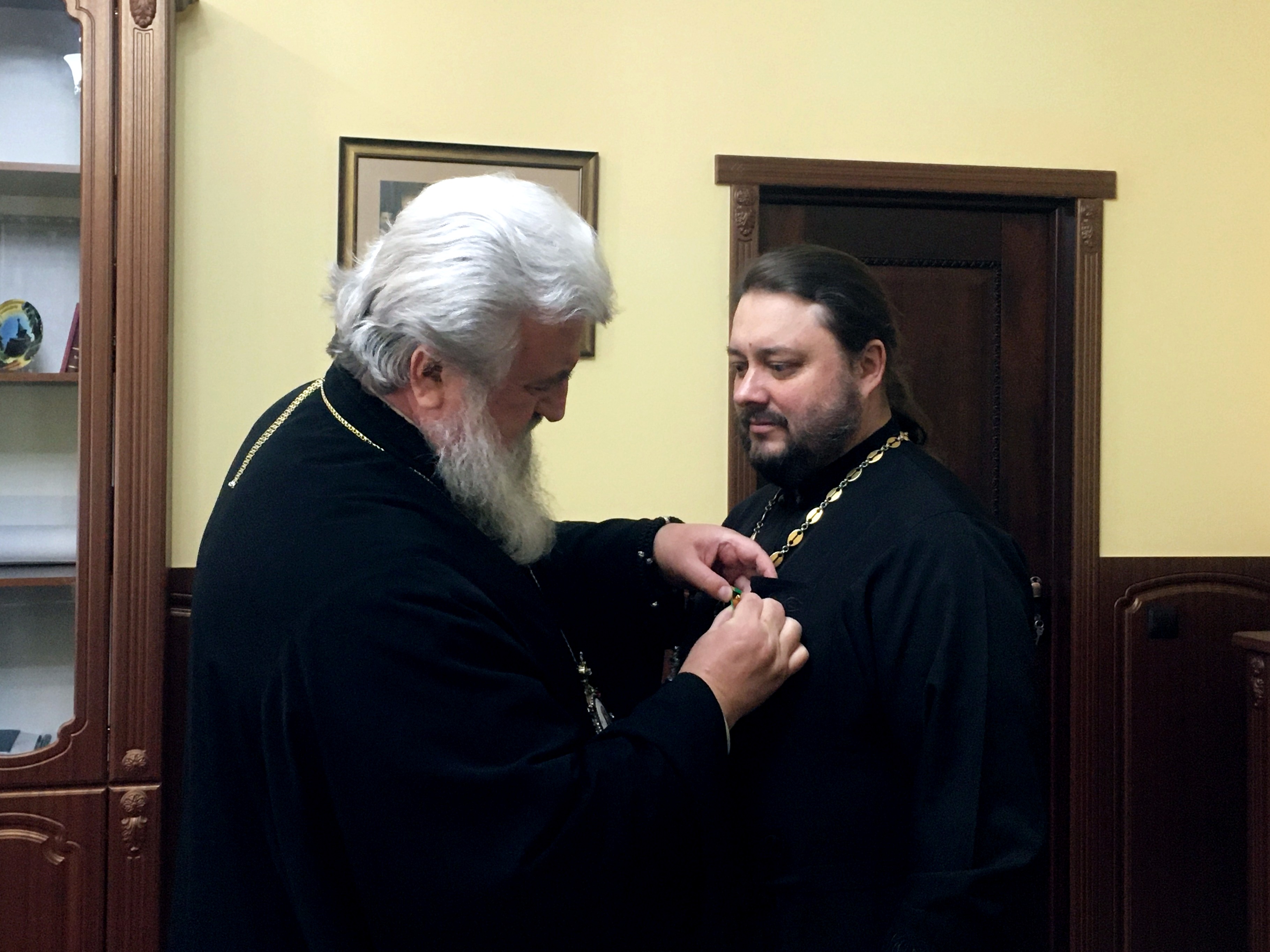 29 мая 2023 года в здании Епархиального управления Преосвященнейший Сергий, епископ Вяземский и Гагаринский вручил клирику Вяземской епархии высокую Патриаршую награду.