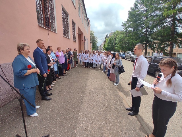 Почётное право открыть мемориальную доску было предоставлено заместителю министра здравоохранения Смоленской области Татьяне Юрьевне Филатовой и председателю профсоюза работников здравоохранения по Смоленской области Елене Николаевне Войтовой.